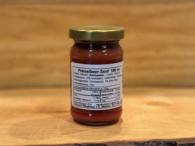 Preiselbeer-Senf bringt fruchtige Süße und klare Würze zusammen. Passt zu Wild, Käse und Fleischgerichten. Die Preiselbeeren liefern eine leichte Säure und eine rote Farbe, die jedes Gericht aufwertet.