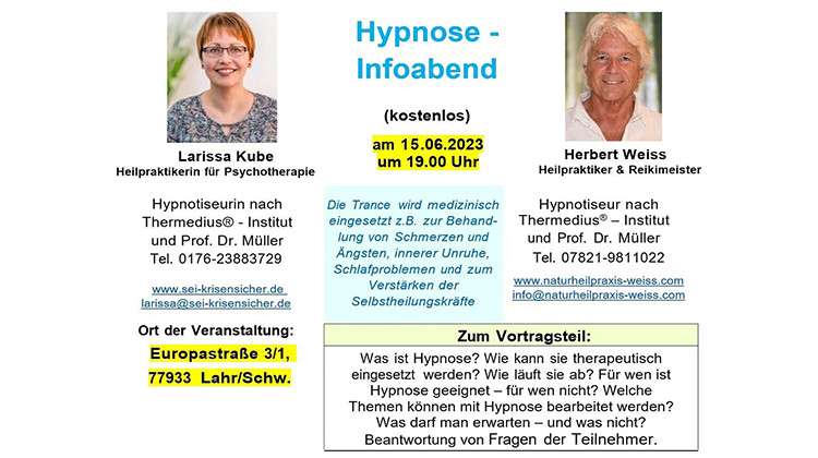 HYPNOSE - Info-Abend am 15.6.23 um 19.00 in Lahr